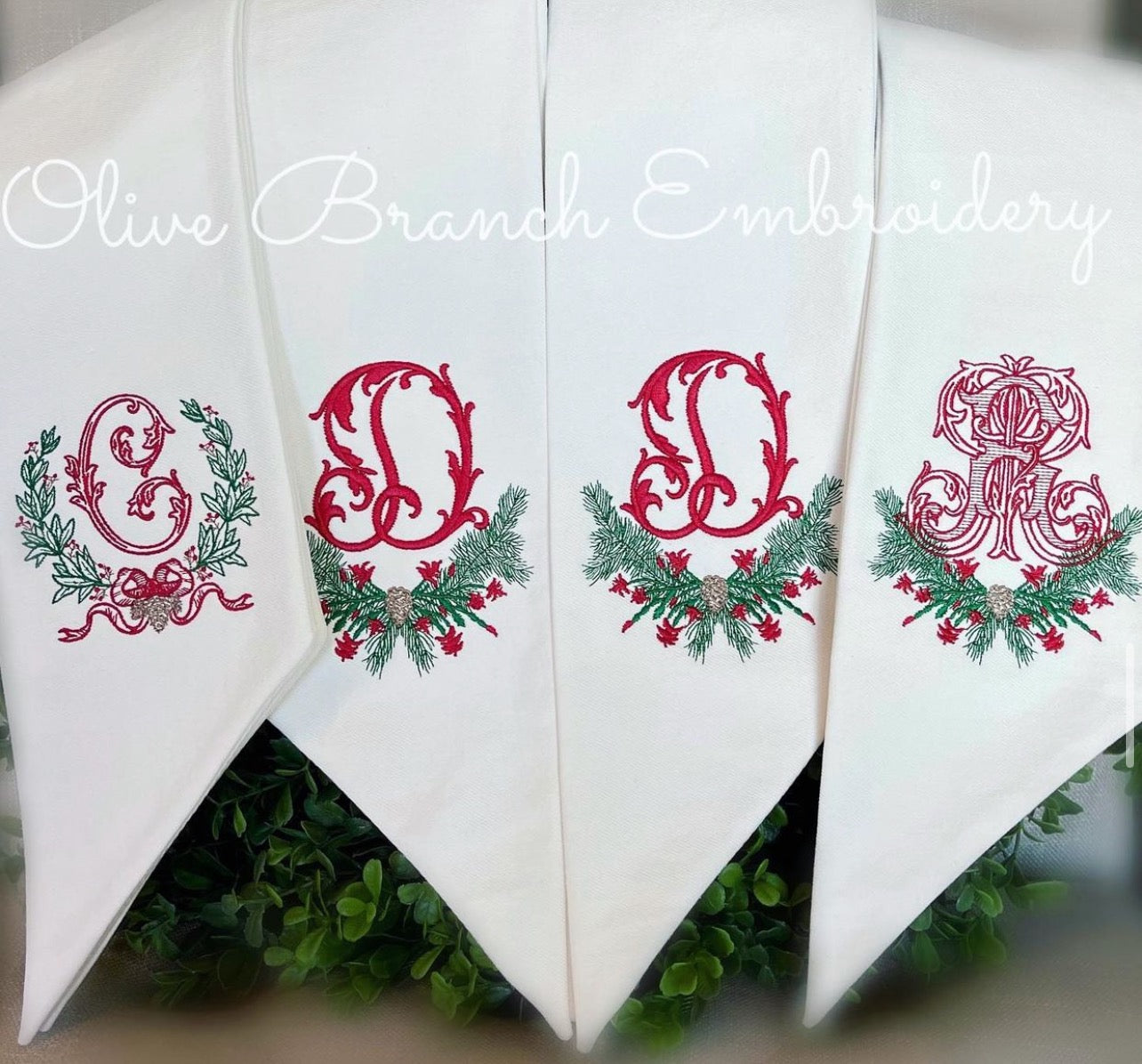 Dupioni Silk Wreath Sash with Vintage Vine Monogram