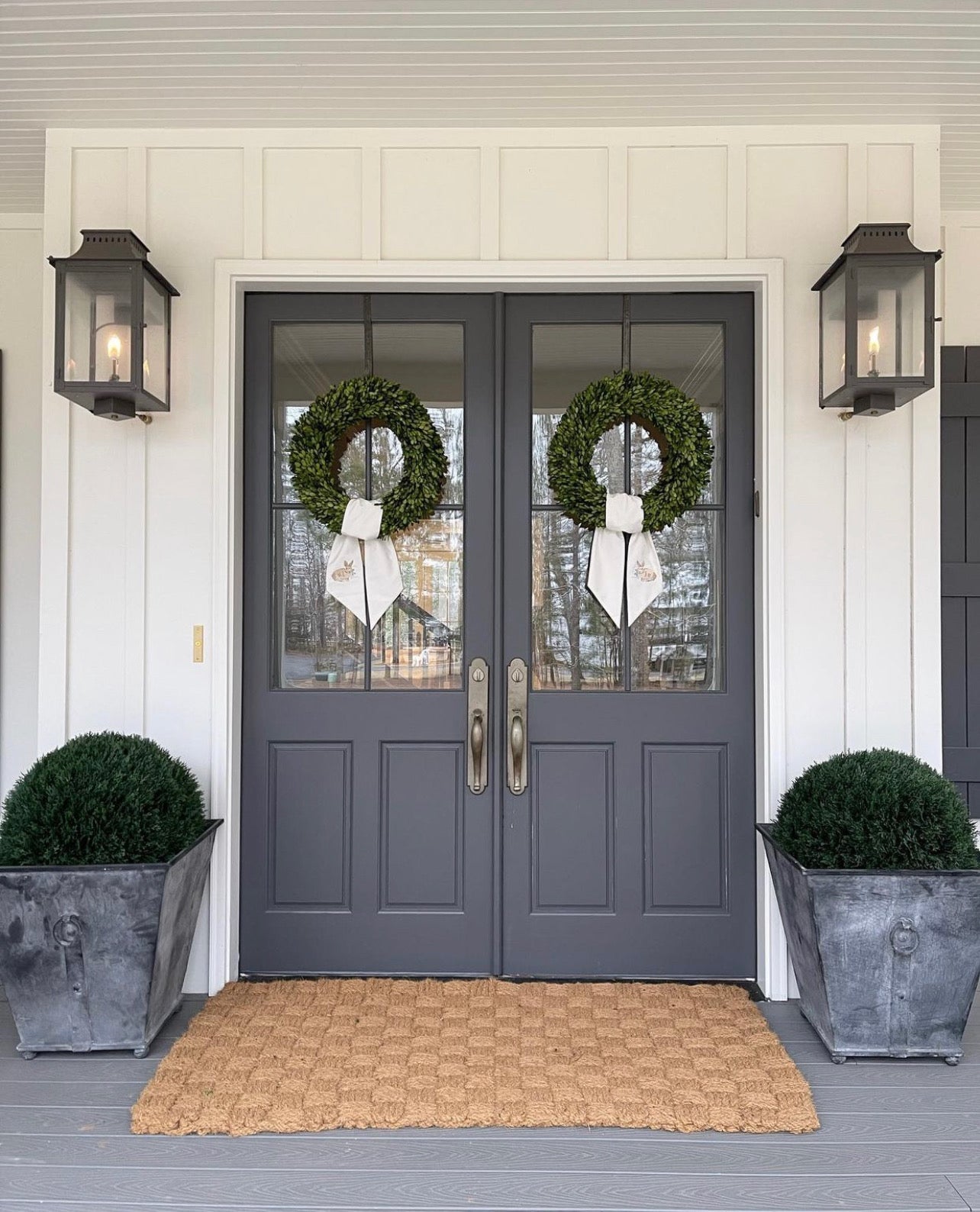 Lacey with the fabulous @wrapped_in_lace Lifestyle & Home Decor Instagram account styled our beautiful bunny sashes perfectly on her stately set of double front doors. These are always a classic way to add style to the outside of your home.